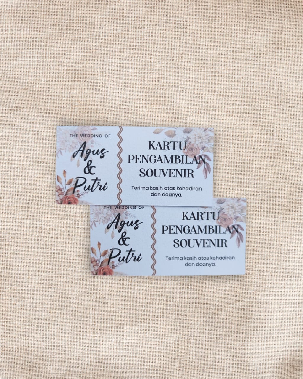 Kartu Pengambilan Souvenir 1 Pack isi 100 lembar Ukuran 10cm x 5 cm Bahan Kertas BC 150/200 gr